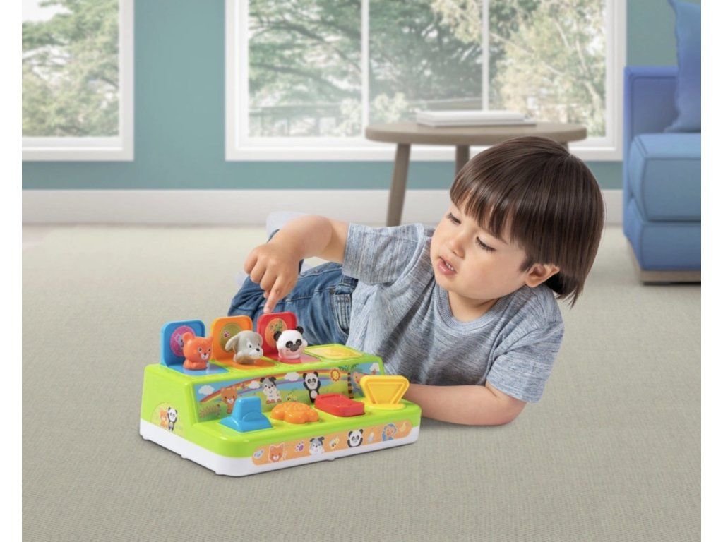 Fantastický první herní zážitek čeká i na ty nejmenší děti! S vyskakovacími zvířátky Big Steps si mohou poprvé vyzkoušet mačkání tlačítek. Děti jsou povzbuzovány k učení a objevování; když stisknou barevná tlačítka, vyskočí z nich zábavné zvířátko (kočka, pes, panda nebo opice). Jasné barvy a různé tvary ještě více upoutají zájem batolat.