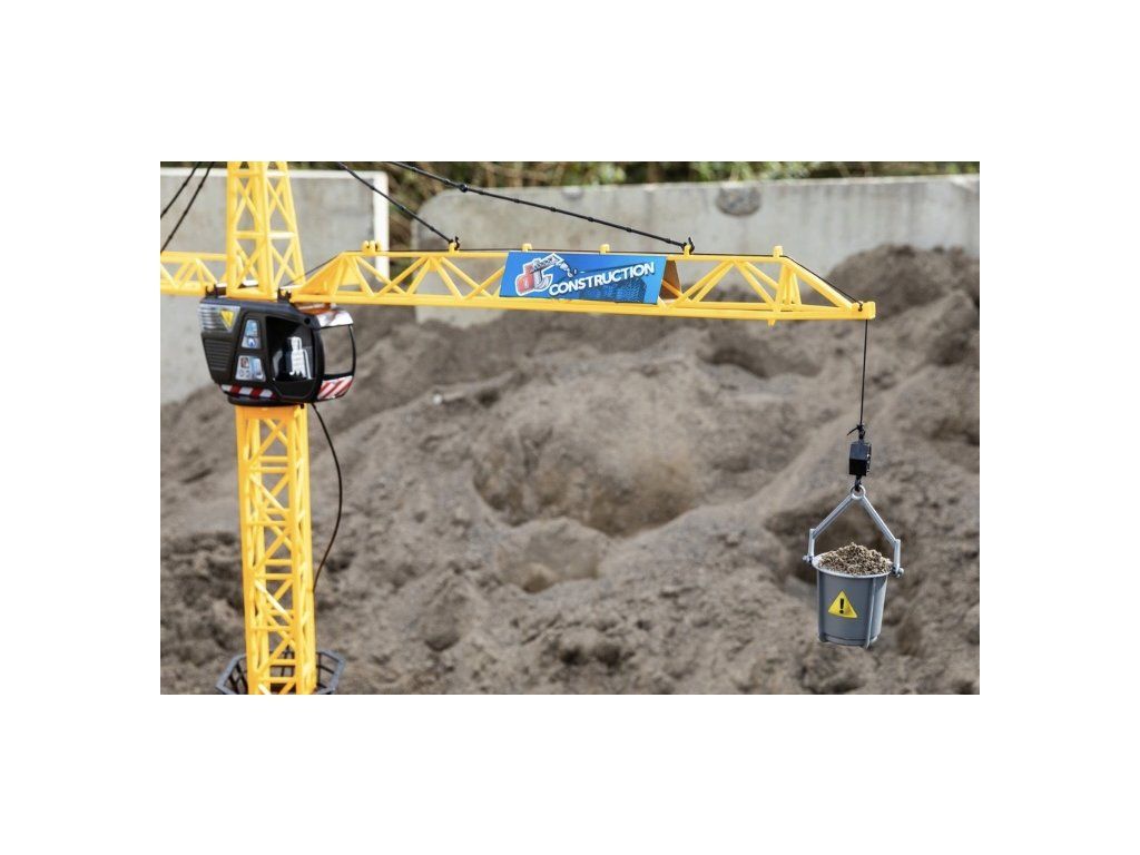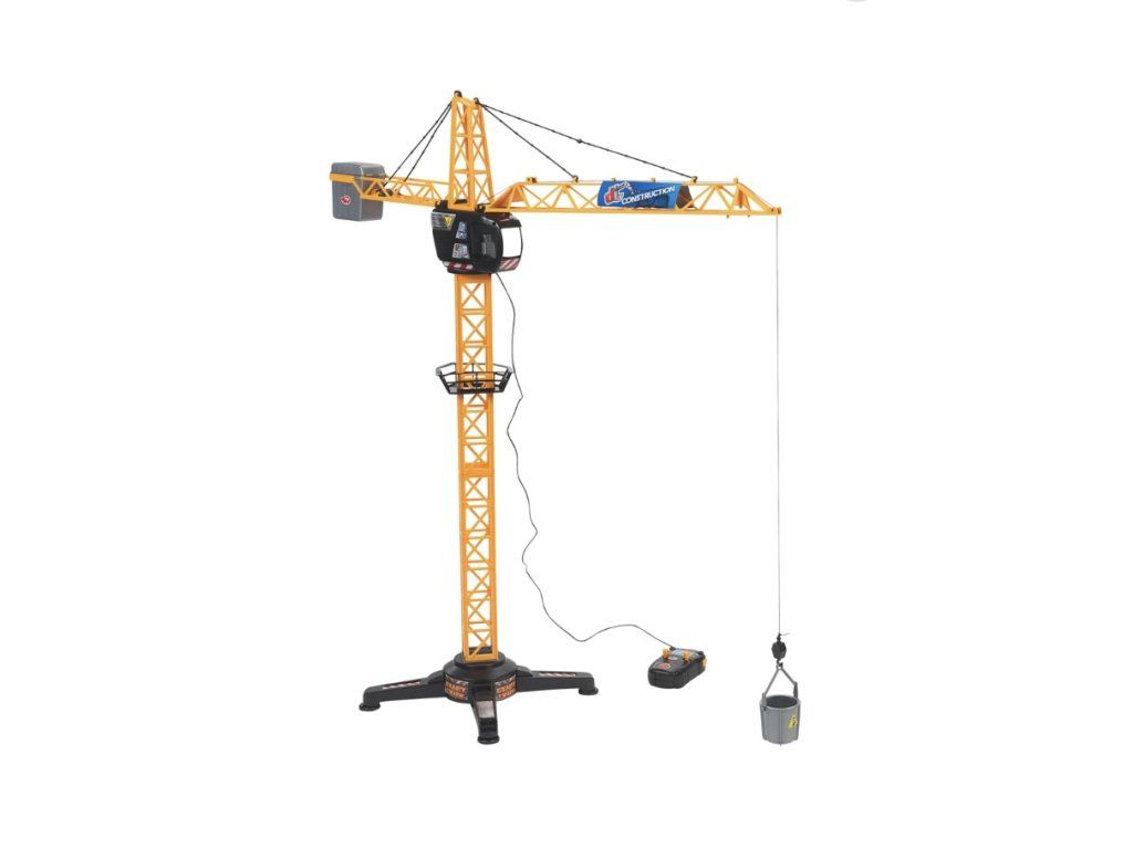 Obří jeřáb od Dickie Toys vám nabízí prvotřídní zábavu při hraní. S výškou přes metr je to úchvatná podívaná. Ovládá se pomocí kabelového dálkového ovladače, který umožňuje otočit otevřenou kabinu řidiče o 350 stupňů stisknutím tlačítka. Jeřáb je také vybaven pohyblivým navijákem a různými přídavnými zařízeními, jako je nakládací plošina nebo lžíce. Můžete si jeho ovládání vyzkoušet na vlastní kůži a jako mistr stavitel se rozhodnout, co budete přepravovat dál.