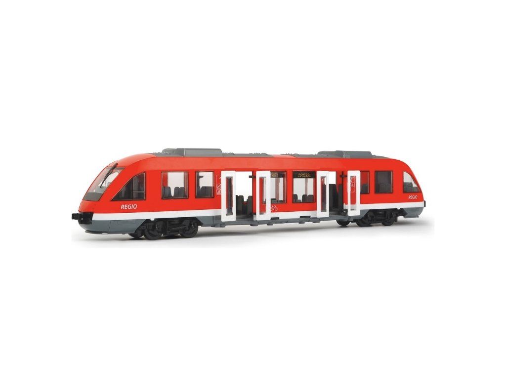 Městský vláček Dickie Toys je chytrý způsob dopravy! Místo jízdy po kolejích jezdí tento regionální rychlík na volně se otáčejících kolech a doveze vás kamkoli si cestující ve vašem hračkářském městě přejí.