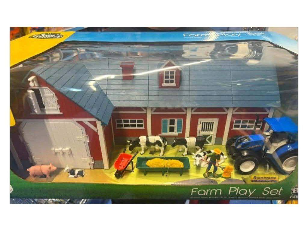 Vytvořte si vlastní farmářská dobrodružství se sadou Moje farma Červená stodola a zvířata s traktorem New Holland, plně sestavenou realistickou farmářskou boudu s otevíracími dveřmi a oknem! Tato okouzlující červená stodola obsahuje detailně propracovaná hospodářská zvířata, farmáře a zábavné herní doplňky a také traktor New Holland s volným chodem!