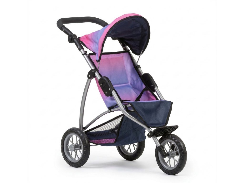 Kočárek pro panenky Chloe – tříkolový kočárek v růžovo-modré kombinaci.