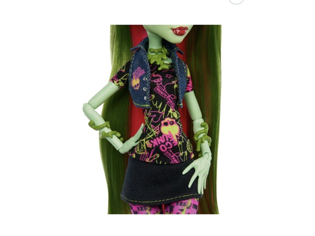 Původní panenky Monster High jsou zpět a přinášejí strašidelné reedice našich oblíbených ghúlů! Panenka Venus McFlytrap, poprvé vydaná v roce 2012, se vrací do své původní, neuvěřitelně fantastické podoby! Má na sobě původní strašidelný outfit s džínovou vestou a sukní, topem a capri kalhotami s výrazným vzorem – jako vždy eko-punk.