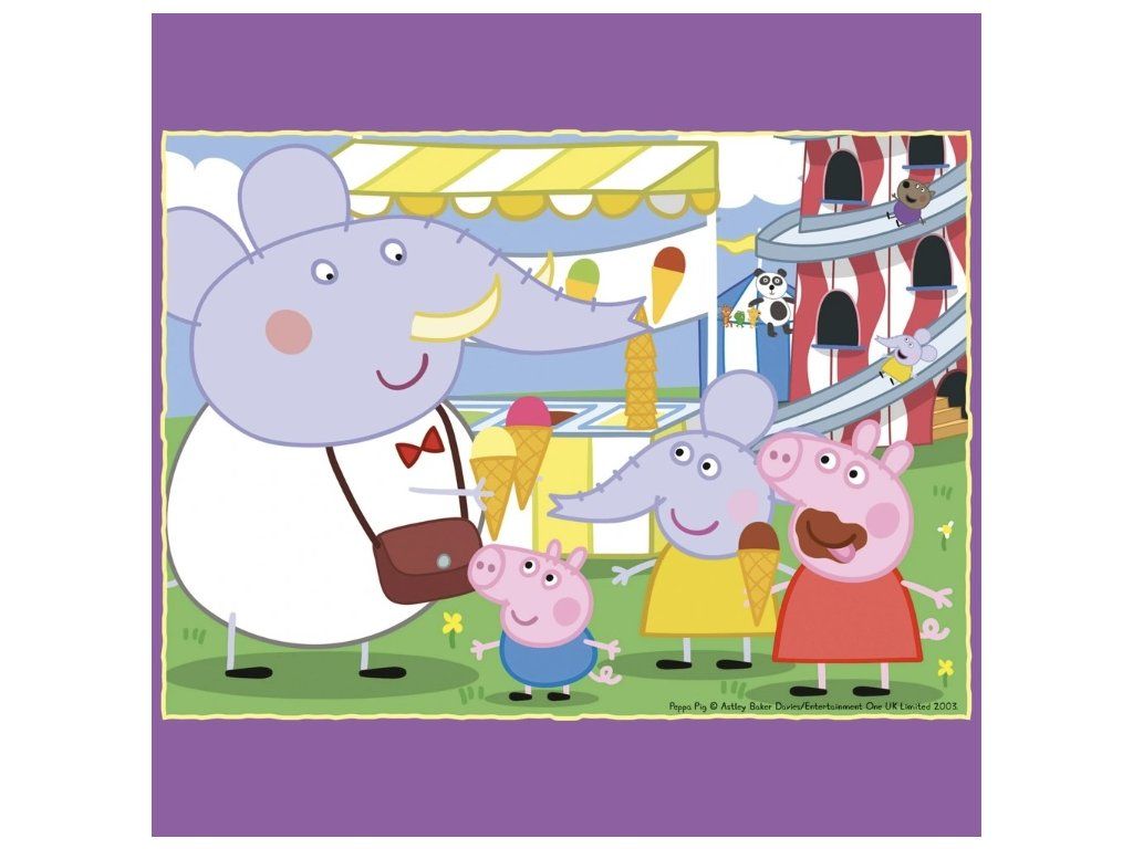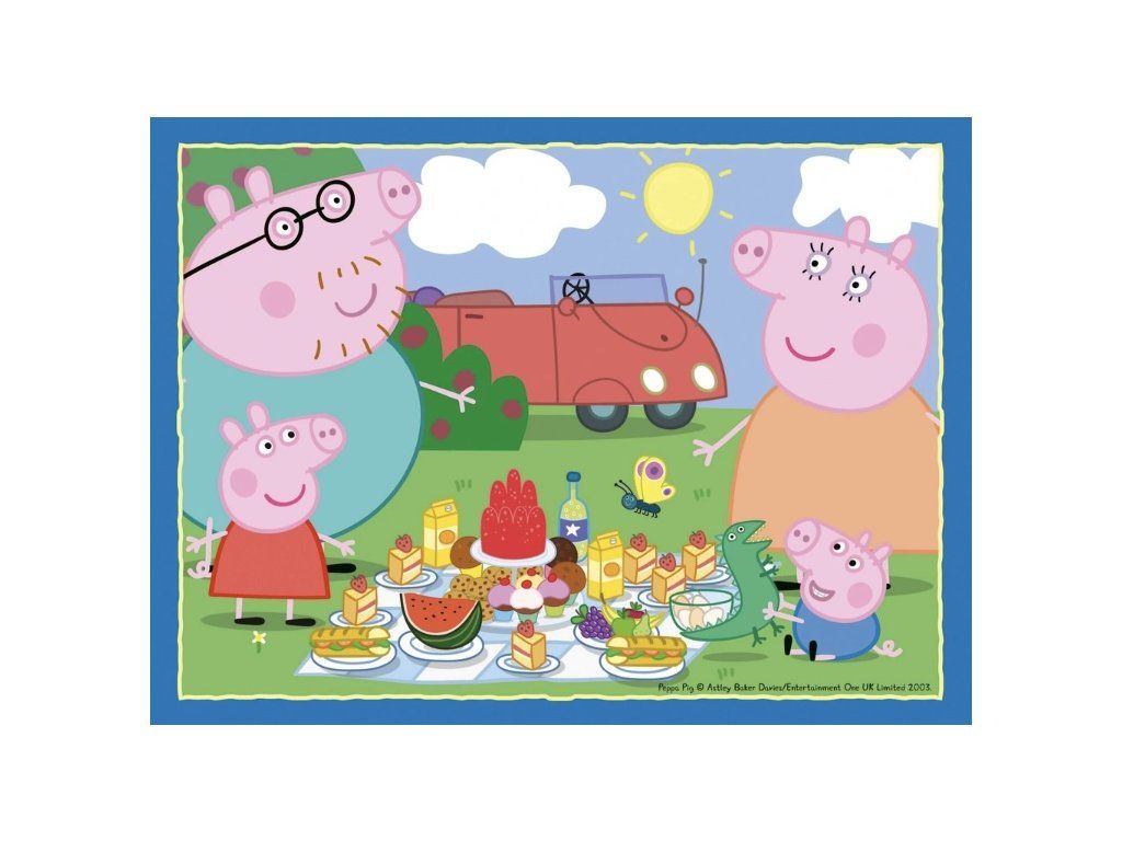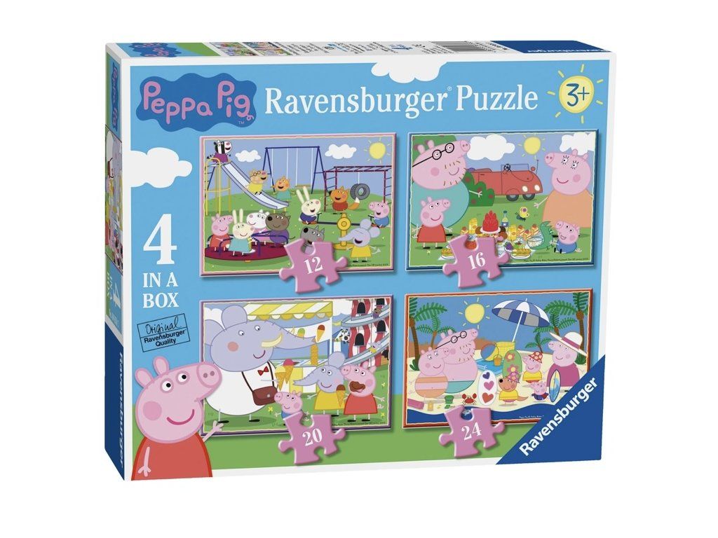 Toto puzzle Ravensburger Peppa Pig 4 v krabici vám umožní užít si mnoho zábavných dní venku kombinací čtyř jasných a barevných obrázků Peppy Pig a jejích přátel.