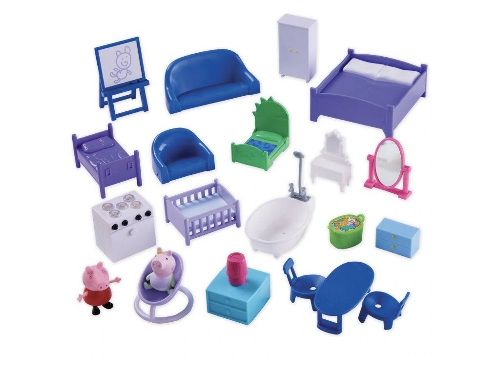 Dřevěný domeček je dodáván s 18 doplňky, které ho oživují, včetně nábytku, jako je postýlka a dětské lehátko. V Peppině obývacím pokoji, kuchyni nebo koupelně si můžete vymýšlet vlastní příběhy a popustit uzdu své fantazii.