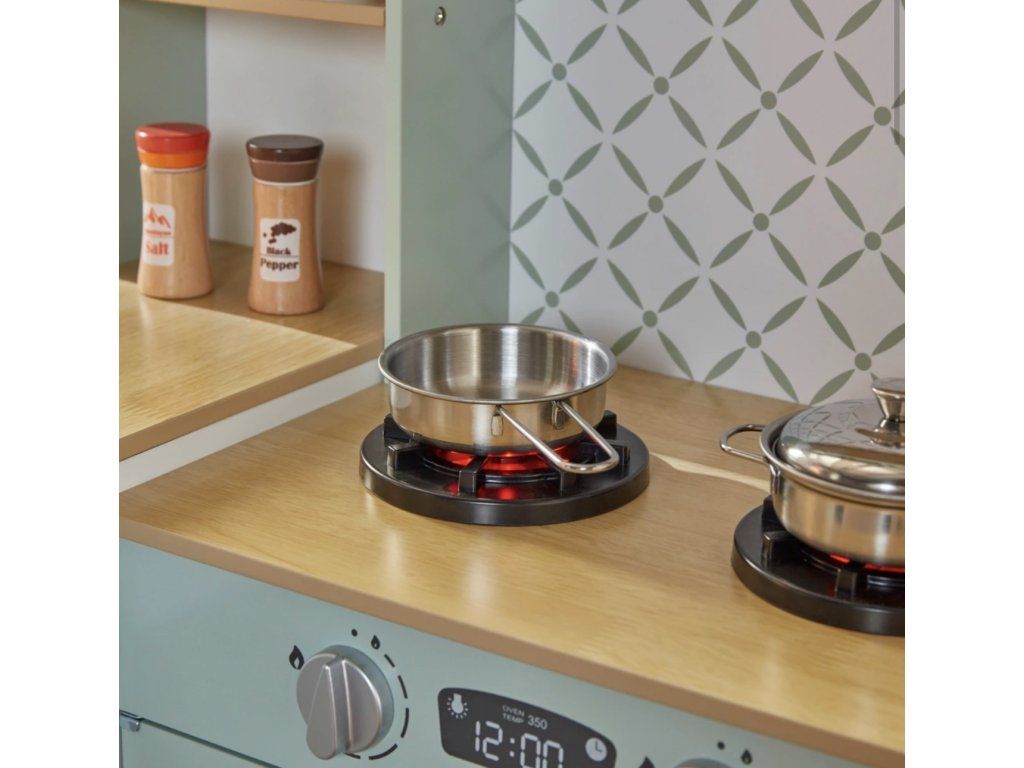 Světelné a zvukové efekty doplňují toto klasické prostředí pro hraní rolí. Sporák, trouba, mikrovlnná trouba a myčka nádobí mají světla; kuchyňské knoflíky vydávají při otáčení zvuky.