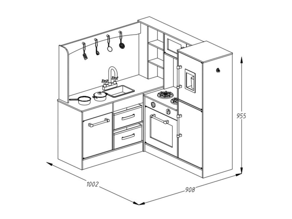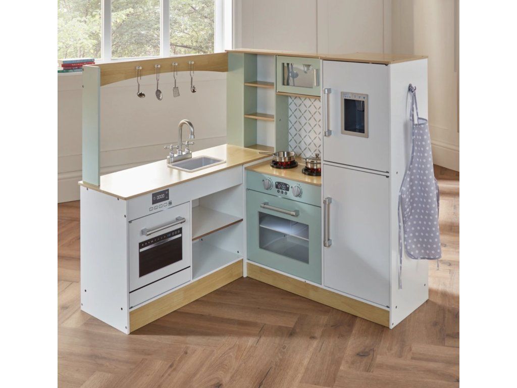 Tato velká dřevěná rohová herní kuchyňka od Kitchen Corner nabízí veškerý luxus, o kterém dospělí ve svých kuchyních sní – ale ve velikosti vhodné pro děti!