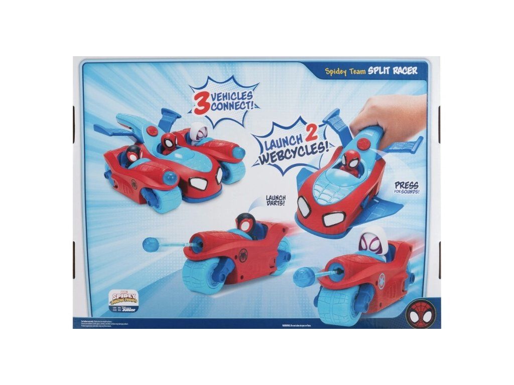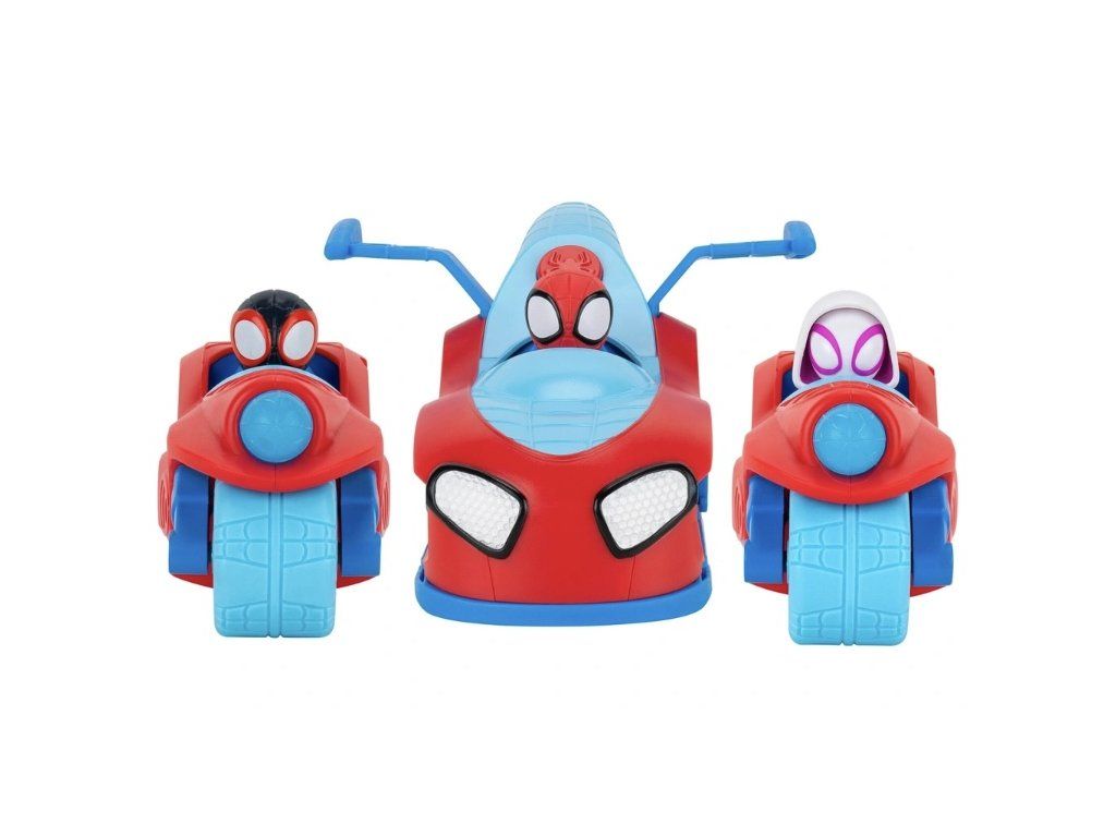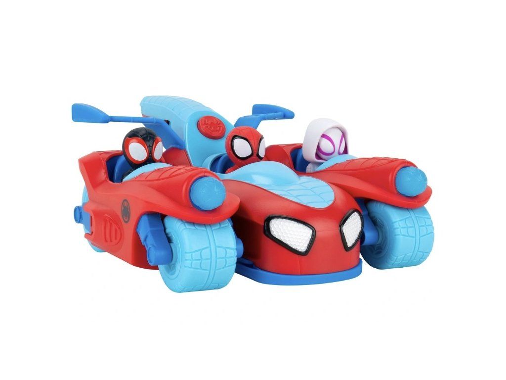 Jedno auto, tři vozidla: Auto Spidey se během několika sekund promění ve Spidey Jet a dvě parádní motorky. Stisknutím tlačítka na logu Spidey se tým rozdělí do různých vozidel a každý superhrdina je připraven na svou vlastní misi.